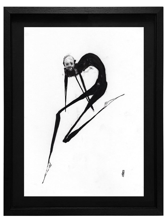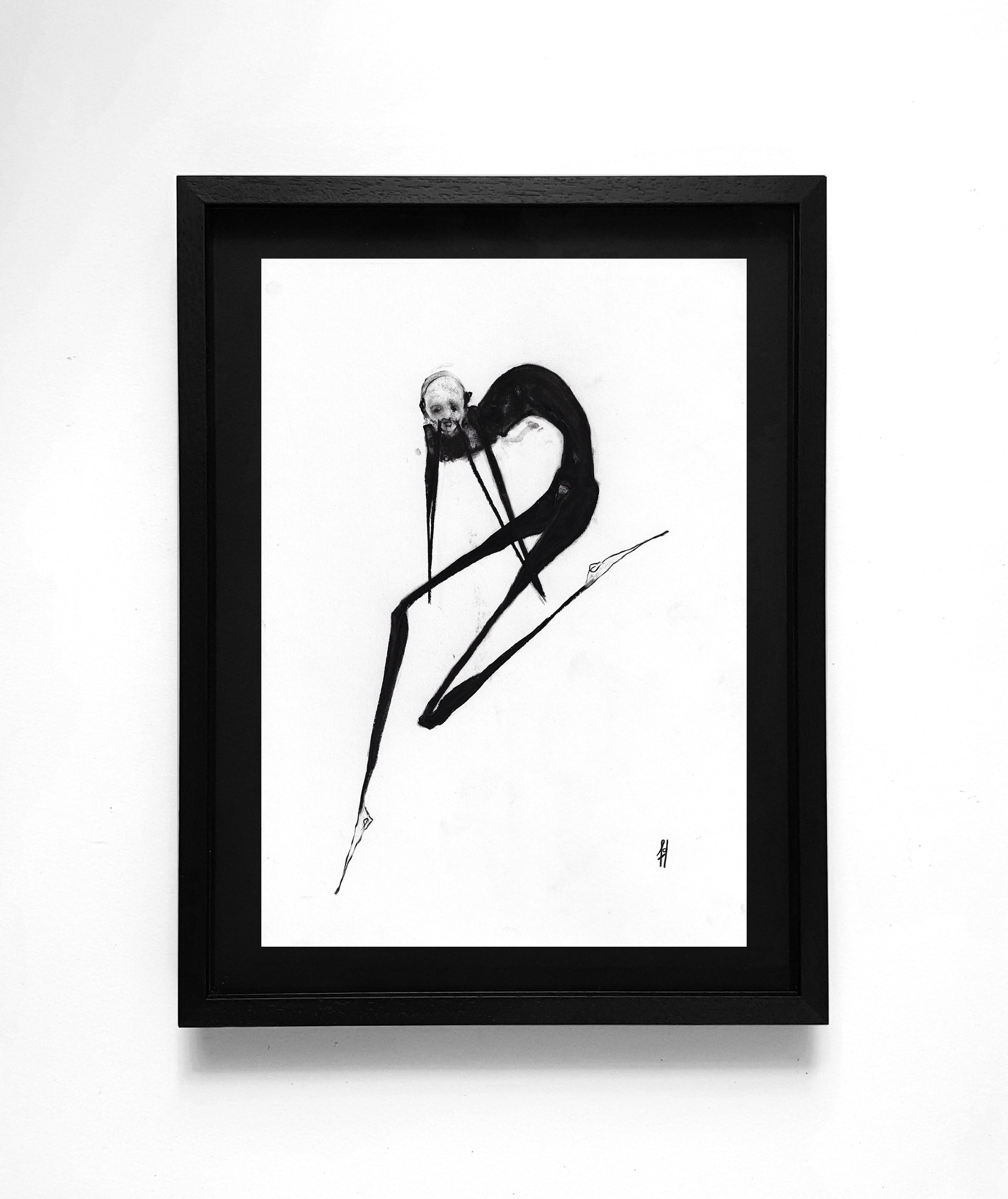 Framed in a custom black matte wooden frame, with the artwork elegantly floated on a black mount.
